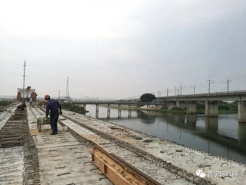 在练江北堤达标加固工程之一——重建跨河建筑物防汛交通桥梁——下寨桥施工现场看到,工人们在做好疫情防控措施的前提下,开始认真投入桥梁建设复工工作中去,为桥梁的路面施工做好准备。普宁练江北堤起点位于普宁与潮南的分界线,终点位于晖晗大桥,全长13.45公里,集雨面积1353平方公里。为切实加固沿线堤围,我市启动了练江北堤达标加固工程,并作为练江综合整治重点项目之一进行推进。建设内容是:整治练江河道长13.45公里,加固练江北堤长13.45公里,重建跨河建筑物(防汛交通桥梁)2座,建设小型穿堤涵闸9座(其中,重建5座、新建4座)。设计防洪标准为50年一遇。练江整治效果图
