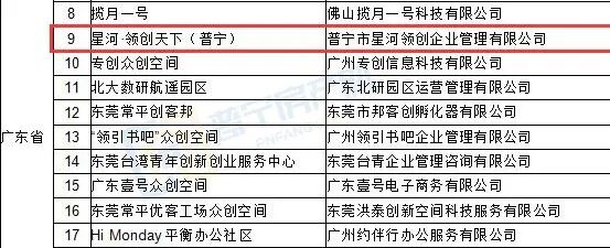 普宁市星河·领创天下成功入围并通过公示,荣获“国家备案众创空间”称号,成为普宁市首家国家级众创空间。