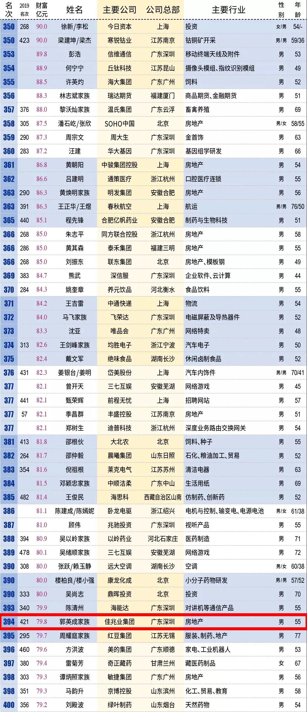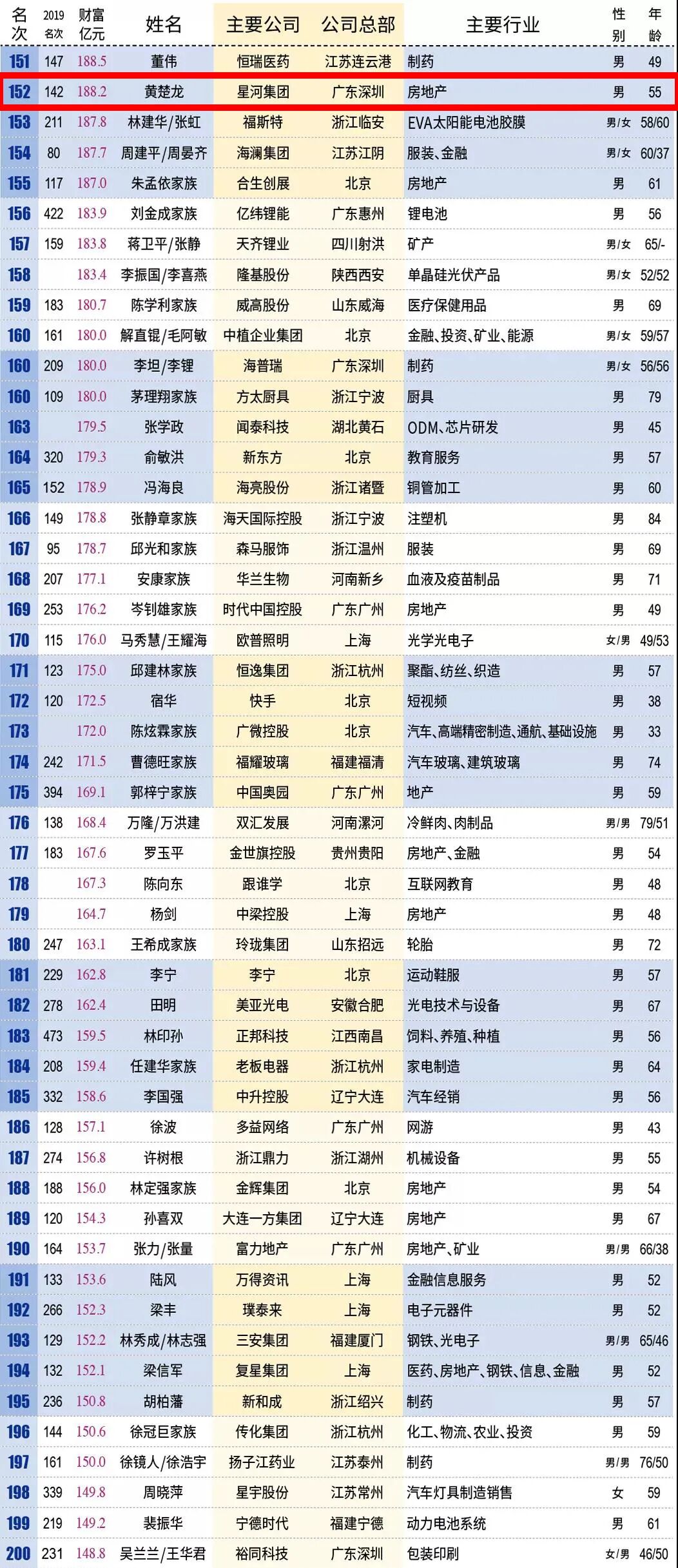 新财富500富人榜,不仅是一份投资指南,也是一份中国头部民营企业生存状况白皮书。近日,2020新财富500富人榜揭晓,其中普宁多位企业家上榜。鸿荣源实业赖海民、星河集团黄楚龙、佳兆业集团郭英成家族、立白集团陈凯旋分别排在第78、152、394、420位。