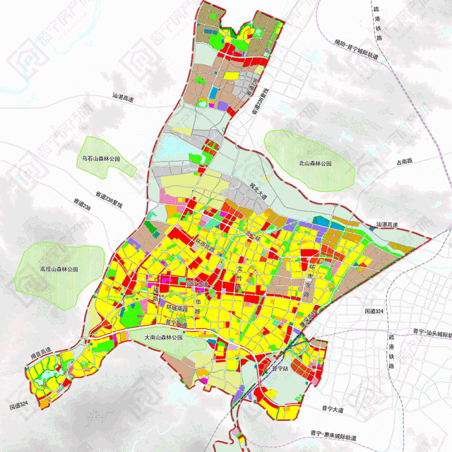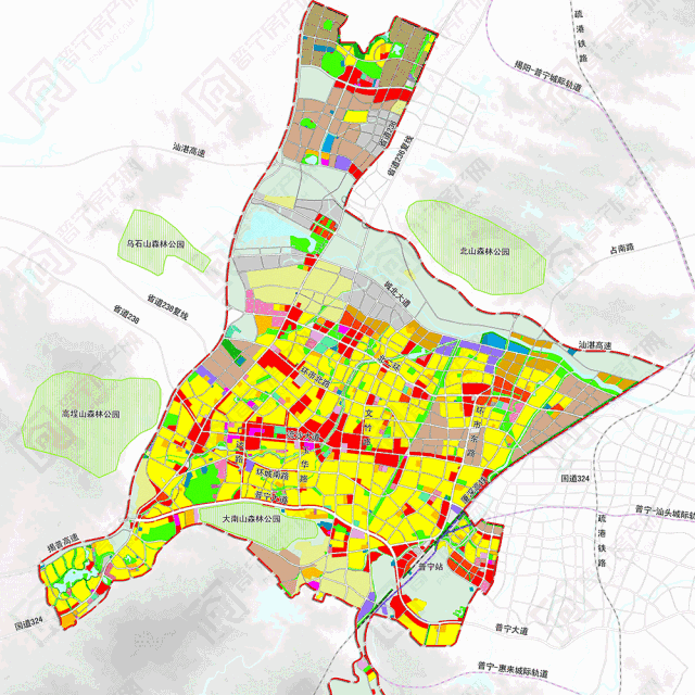 2.如上图《普宁市城市总体规划(2015—2030)》中心城区规划图所示,A5粉色医疗卫生用地所示,由此猜测这里将建新的人民医院,但近期又收到消息称人民医院将在原址建设一幢25层内科大楼,看来新的人民医院搬迁周期会比较长,具体规划以政府公布为准。