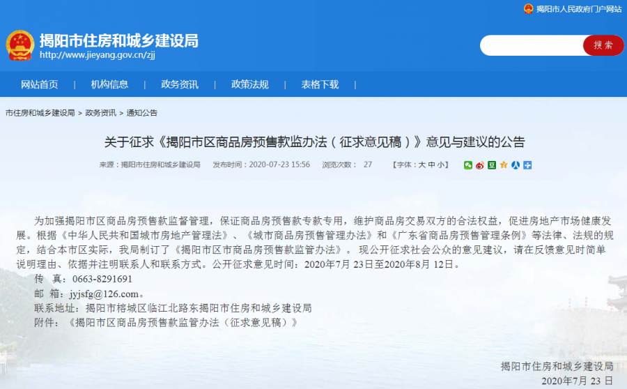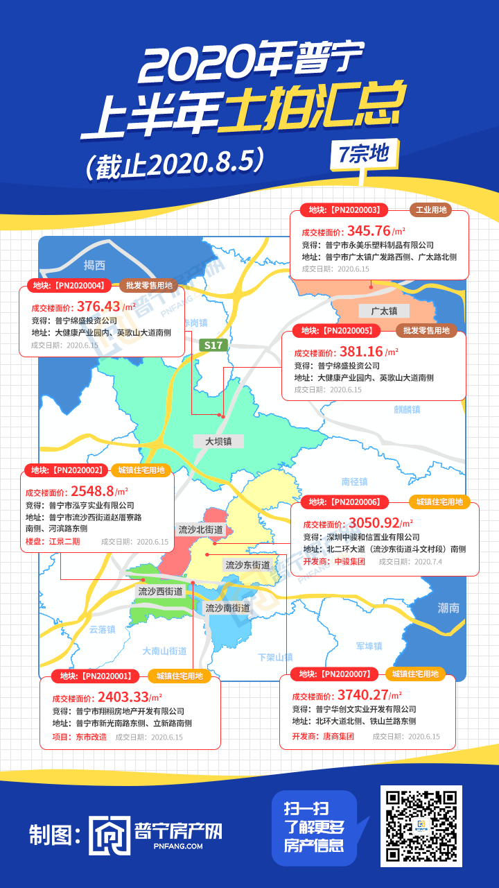 下半年普宁房地产市场将怎么走? 在中国人民大学副校长刘元春看来,在后疫情时代,只要中国疫情可控,资产价格适度回归的预期就是既定的,资产和流动性的流向也应该是既定的,房地产市场在下半年出现持续回升就是大概率事件。 今年上半年,随着疫情防控取得阶段性胜利,恢复社会经济发展成为社会主要任务之后,从2020年上半年经济数据来看,揭阳全市房地产开发投资157.38亿元,同比增长122.5%,而普宁市则以42.43亿元位居第一,可见市场的成交量呈现的稳步趋升的态势,也见证了普宁房地产市场正逐渐回暖的趋势。 土拍市场方面,2020年1-7月,普宁市共拍出7宗地块,土地出让面积约为139745㎡,总成交金额为16.1945亿元。值得注意的是,普宁6月的3场土拍的楼面价位居“普宁土拍楼面价TOP10”(仅统计住宅用地,数据截止日期为2020年6月30日),分别是位列TOP7的地PN2020001、位列TOP6的地块PN2020002、位列TOP2的地块PN2020007,单单6月就有三场土拍楼面价跻身前列,由此可见,普宁上半年土拍市场“来势汹汹”!! 在调控政策方面,阶段来,普宁市坚决贯彻落实揭阳市委、市政府的工作部署,全面严查严控违法建设,全力打好违法建设治理攻坚仗。 据了解,结合“三清三拆三整治”行动,我市自6月初至7月初已拆除违建7.56万平方米,今年以来违法建设治理攻坚拆违共27.42万平方米,完成年度治理目标的91.39%。 与此同时,为加强揭阳市区商品房预售款监督管理,保证商品房预售款专款专用,维护商品房交易双方的合法权益,促进房地产市场健康发展,揭阳市住房和城乡建设局制订了《揭阳市区市商品房预售款监管办法》,公开征求社会公众的意见建议。房地产市场日益规范化,正规化!